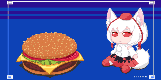 @Some_Tsuchinoko fan art 4 u fumo,Momiji and borgar \ (^ v ^) / #pixelart #pixelartist #touhouproject #ドット絵