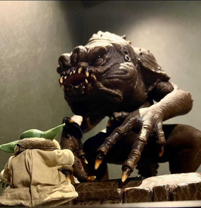 1/4スケールのグローグーとイリューシブのランコアで撮ってみた⭐︎ #starwars #bobafett #mandalorian #hottoys #illusive #スターウォーズ #ボバフェット #マンダロリアン #ホットトイズ #オモ写