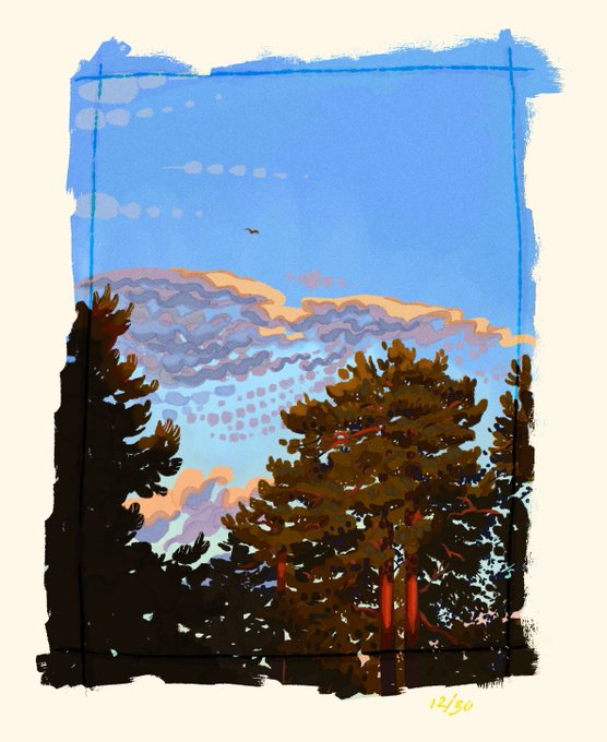 #PleinAirpril nr. 12, evening light hitting the pines, at my grandparents' old house.