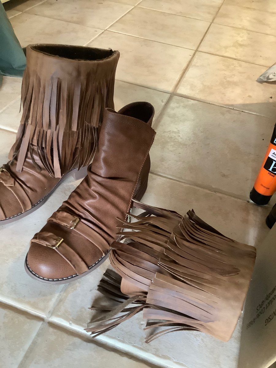 I know it’s only a small detail, but I love finishing a thing that works out just the way you wanted it to ❤️ I can remove the fringe section easily and use these boots as is! The buckles are permanently attached though. #cosplay #mushroomgirl #mushroom #womenwhocosplay