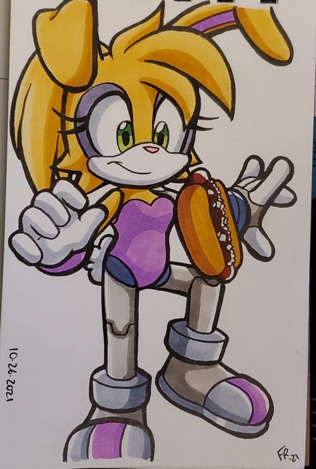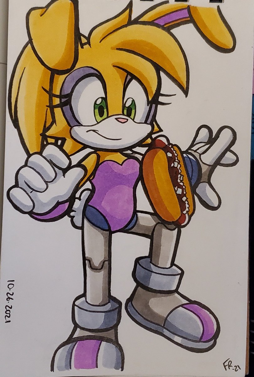 #ChiliDogtober Day 22! Wish I could balance things as well as Bunnie here but still trying to catch up >< #inktober #inktober2021 #inktober2021day22 #sonicarchiecomics #sonicfanart #bunnierabbot #bunnierabbotdcoolette #bunniedcoolette