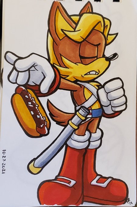 #ChiliDogtober Day 17! Bean thinks this chili dog is the bomb! #Inktober #Inktober2021 #Inktober2021day17 #sonicfanart #beanthedynamite
