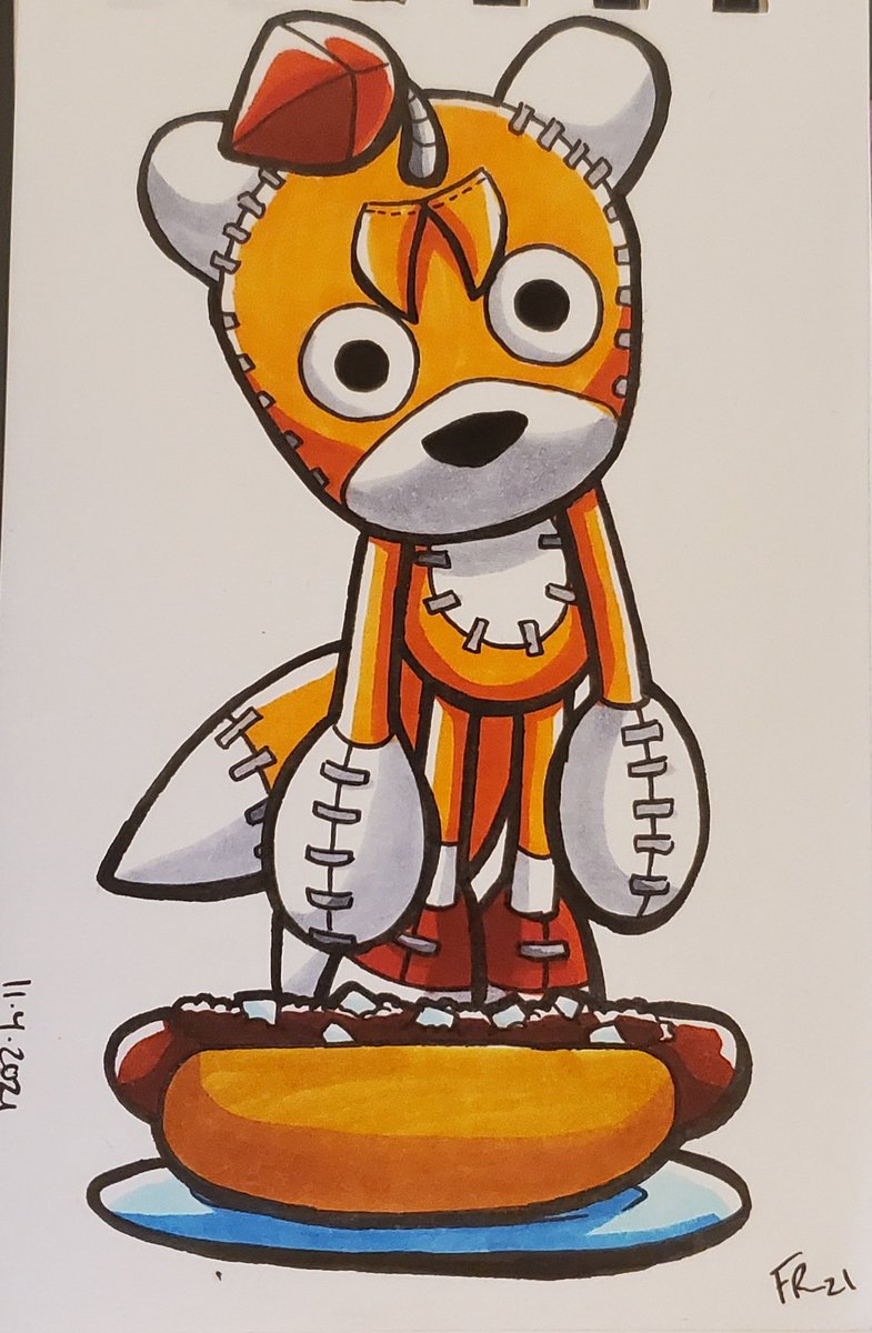 Didn't forget about today's #ChiliDogtober but I don't have the colors to finish it yet. Tried to see about mixing things but it'll just be messy so I'll have to see about getting a new color or two later >< sorry #wip #inktober #inktober 2021 #inktober2021day11