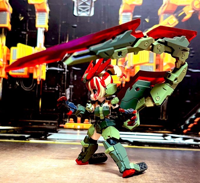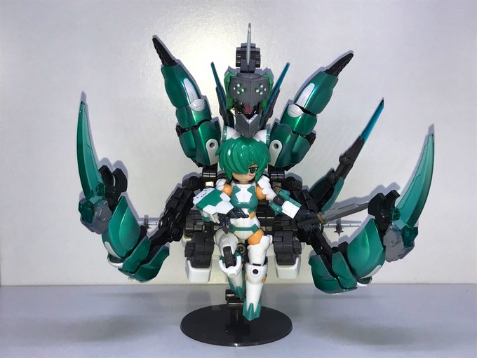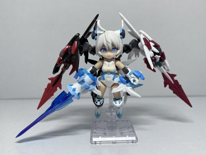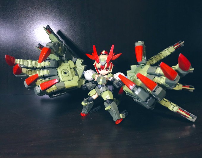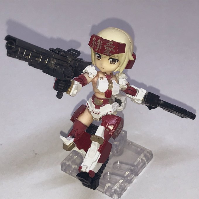#デスクトップアーミー 颸娜屠の新形態 「嵐」 颸娜屠と颶颯、そして謎のバックパックが合体して高火力と機動力を備えた無敵の装備が生まれたのであった。 颸娜屠「謎のバックパックってなんなんだじゃ…?」