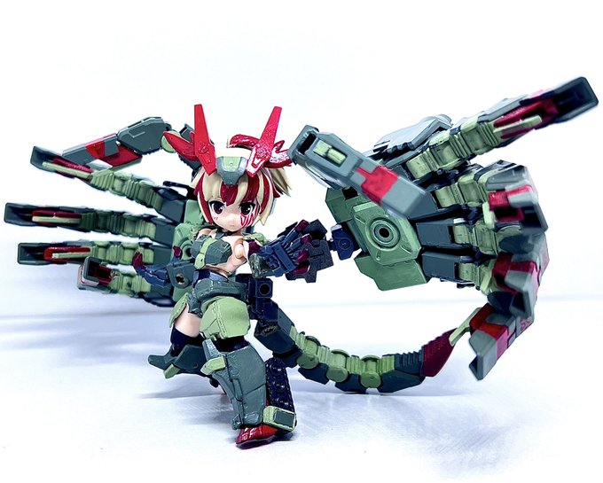 #武装の設定を語り合おうじゃないか #デスクトップアーミー 「 」 璐智のメイン武装 まるで蛇の頭のような指先からはあらゆるものを溶断するレーザーを射出する。 指それぞれに独自のAIが搭載されていて、本人の意識外でも個別に攻撃が可能。