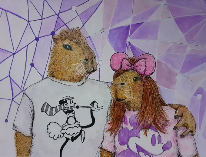 A special Christmas commission of a couple as capybara 🎨🖌 #art #illustration #capybara #portrait #watercolour #Disney #Christmas #painting