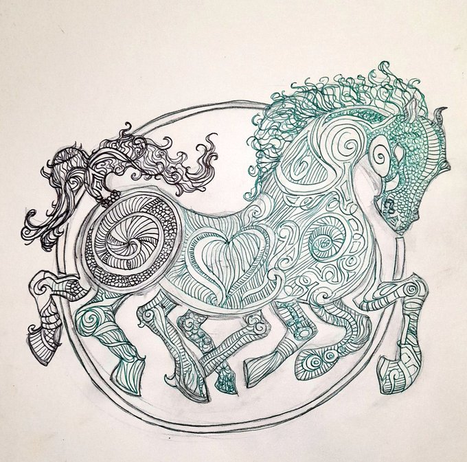Mine didn't quite work this evening, but I had fun using oil pastels and doodling with biro 🙂 #oilpastels #illustration #drawing #art #sleipnirhorse #norsemythology twitter.com/PaulPickford7/…