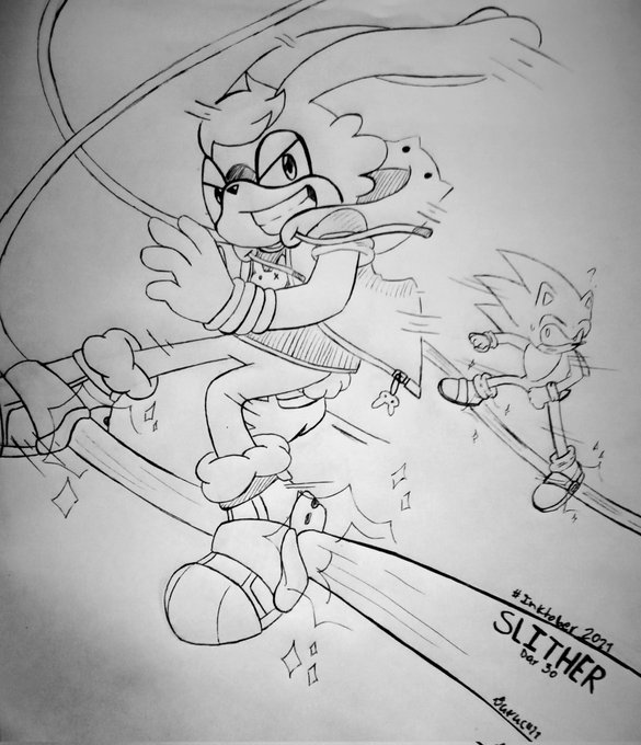 ✒Day/Día 30 del #inktober2021✒ (#inktober2021day30 #inktober #happytreefriends #crossover #SonicTheHedgehog) 🌟Slither/Deslizarse🌟 Feat:Cuddles and sonic (En este mundo disfruta al máximo lo que serian las acrobacias con alta adrenalina, en el otro mundo muere en el intento)