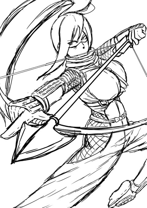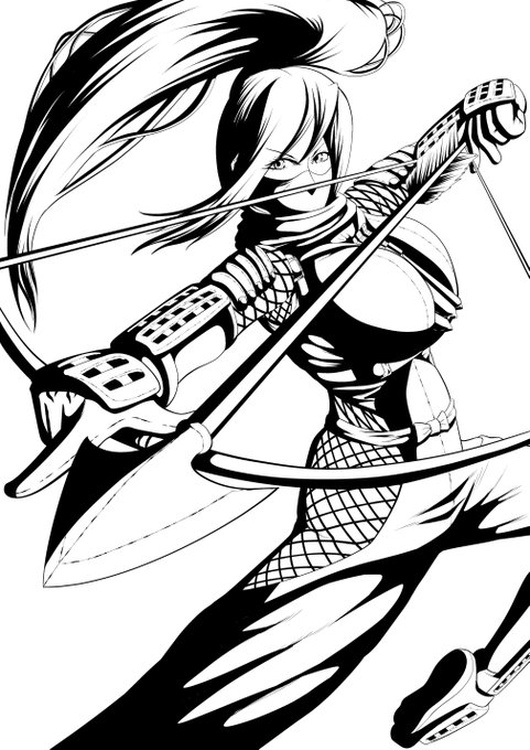 #ニンジャスレイヤー #アムニジア #ドラゴン・ユカノ #ウキヨエ #イラスト #絵描きさんとつながりたい 完成 アムニジア=サン(ユカノ)だと弓引く際は水平撃ちじゃないと、弦が豊満にムチめいて引っかかる気がして・・・