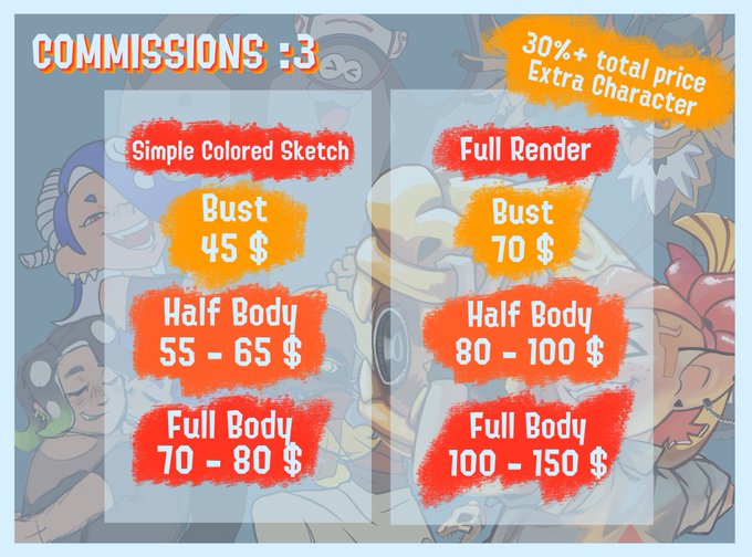 C0mms are now open!! 😁🫡💥💥 examples in reply ☝️💥💥 RTs are so so appreciated!! will accept 5 solo c0mms at a time! and 5 other separate slots for the shared canvas option!