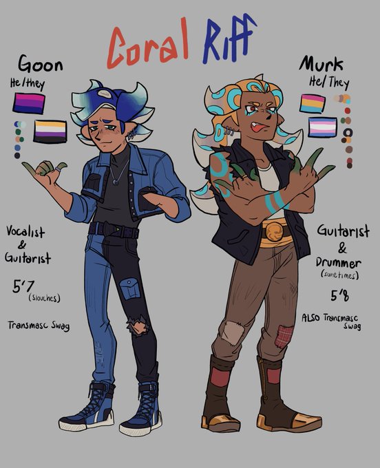 Okay. Take Two. Everyone meet Coral Riff!!! Fan idols me and @Nikuman_02 made together!!! theyre dual guitarists and make alot of indie/alt rock (or whatever the genre i listen to is called tbh...)