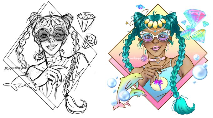 From rough sketch to finished and polished piece. I love the vaporwave aesthetic so much. Sailor Moon inspired hair because I love it so. #aesthetic #art #sketch #vaporwave #artistsontwitter #drawing