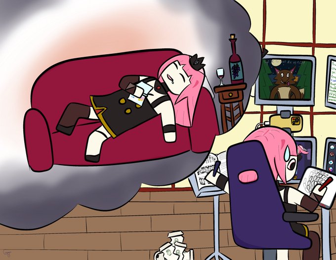 1/10: Sloth - Or more accurately, the closest Calli gets to it. We know about your schedules… #10DeadlyChallenge #callillust