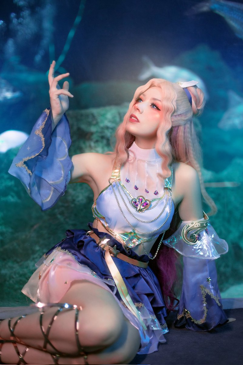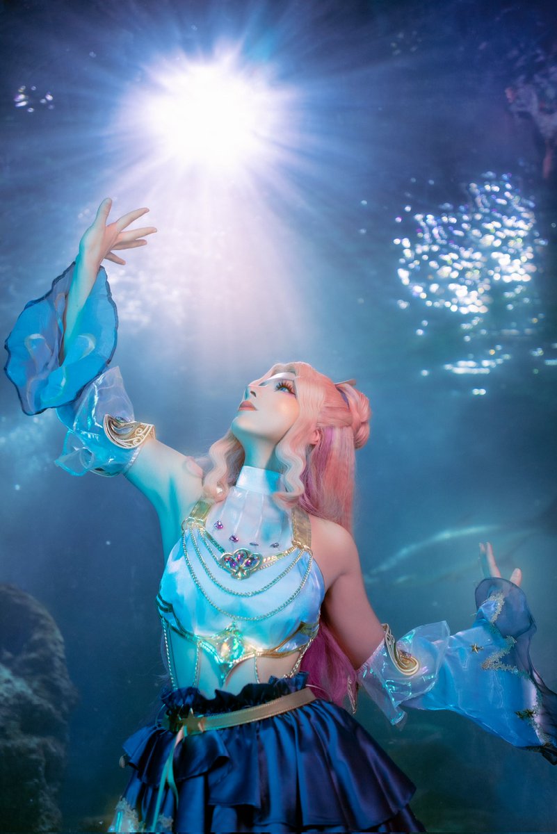 🐚 🅂🄴🅁🄰🄿🄷🄸🄽🄴 🄾🄲🄴🄰🄽 🅂🄾🄽🄶 🐚 Me siento como una sirena con este traje, es enserio bellísimo 💙 ¿Que otro cosplay de League of Legends les gustaría que hiciera? 🥰 👗 @uwowo.cosplay 📸 @LilianJacoboG #seraphinecosplay #seraphine #lolcosplay #leagueoflegendscosplay