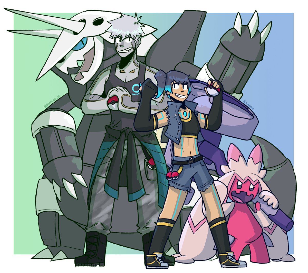 Whoops almost forgot, here’s all six of the ouroboros as pokemon trainers together! #XenobladeChronicles3