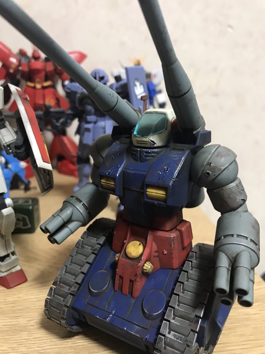 ガンタンク完成! 実はうちの兄貴に頼まれたので体を曲げられるように改造してからのウェザリング塗装をしていきます……やることめっちゃあるやん #ガンプラ #ガンプラ好きと繋がりたい #ガンプラの画像貼るとRTされると聞いて