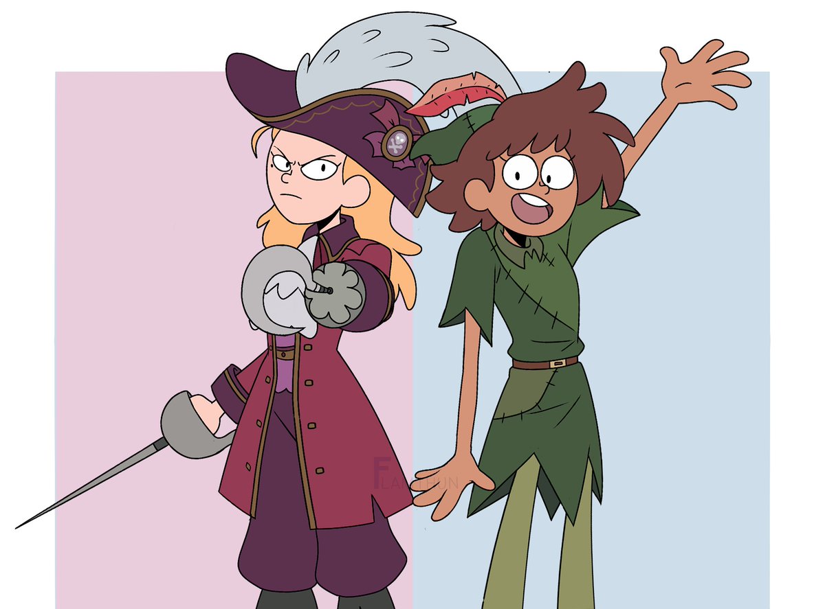I like their Peter Pan and Captain Hook costumes ✨ #Amphibia #SashaWaybright #AnneBoonchuy