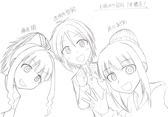 #モバマス版深夜の真剣お絵かき60分1本勝負 #浜口あやめ #道明寺歌鈴 #藤居朋 担当しかいなかったから全員描いたぞぉ!! 色無しで申し訳ありません!! (初参加です!!!)