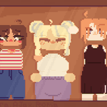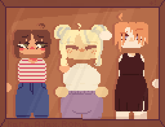 Here's that art I promised :] Several people???? ( Left: Roma, she/they/he, middle: Kara, she/her, right: Ajax, It/They ) [ Comments & Retweets appreciated ] #pixelart #ocart #originalcharacterart #digitalart #ocart #ocs #oc #originalcharacters