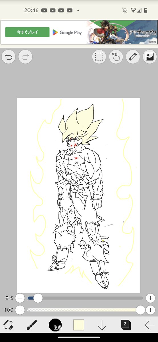2 10 悟空のバランス崩れたー ペン入れと色塗りするかも…? #ドラゴンボール #イラスト #模写 23/03/27 22:45