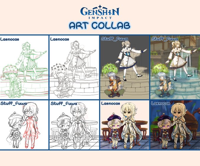 After 4 months I've finally finished my part in this collab hahaha thank you very much @Laenocae Mine was rushed but I still had fun doing it uwu they both turned out cute #artcollab #genshinimpactfanart #genshinimpact