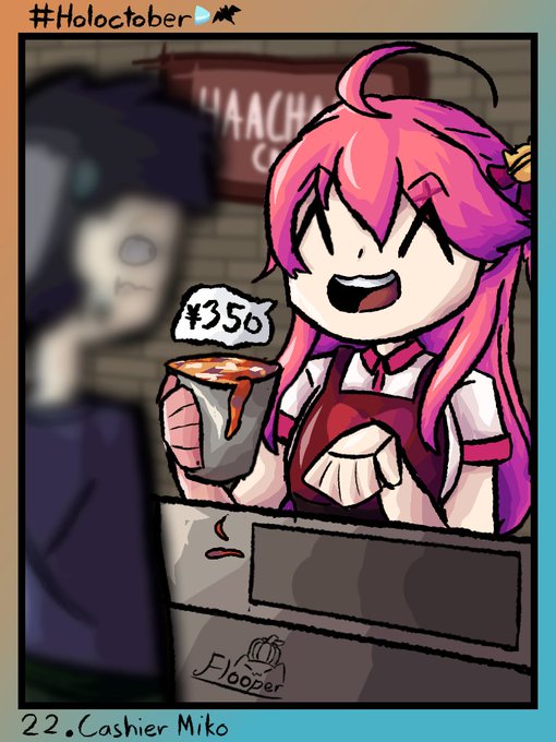 🌸 "Thank you for waiting nye, here your Elite - Sized Hot Lava Bucket Drink." #HOLOctober Day 22 Cashier Miko (a bit rushed lol) #miko_Art