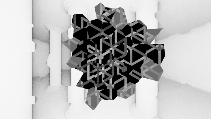 Here is my #INKTOBER2019 day 4 #shader : Freeze. I had much fun working on an old shape of mine but with new techniques I've learned in 2019 ^^ Hope you'll enjoy, click on the link to see it moving : shadertoy.com/view/wdVGWW #inktober