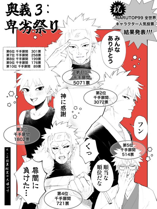 3 7 #NARUTOP_ART #NARUTOP99 【再掲】本日最終日!千手扉間に清き一票を✨ 23/01/31 09:35