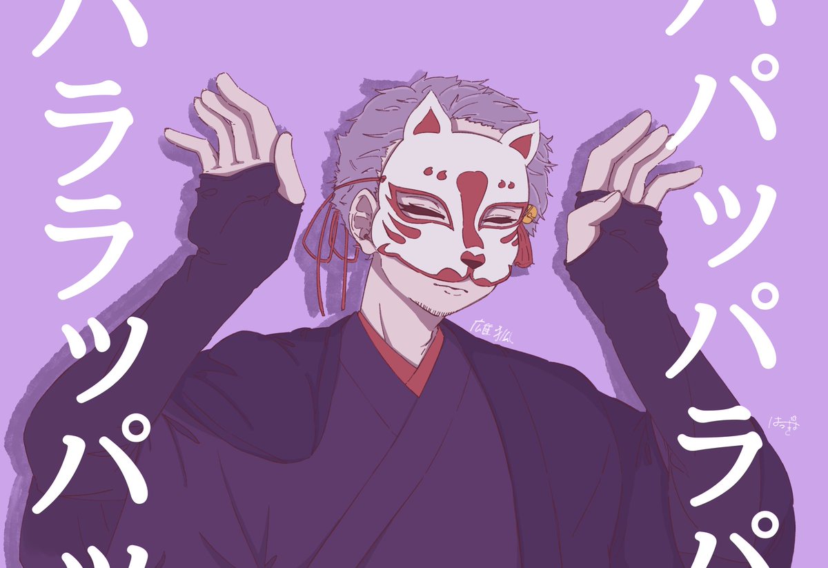 落書き店主さん シルエットが綺麗すぎる…が故に楽しい…´`*お面の正面が難ちぃ… 雄狐さんもこの後描く予定… #幻空堂ファンアート