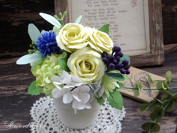 紙のお花のフラワーアレンジメントを制作しました。花材は全て紙で制作しました。 ペールイエローのバラをメインに。 #紙のお花 #フラワーアレンジメント #ペーパークラフト #ペーパーフラワー ↓ブログもよろしくお願いします。 flowerdrops85.blog.fc2.com/blog-entry-341…