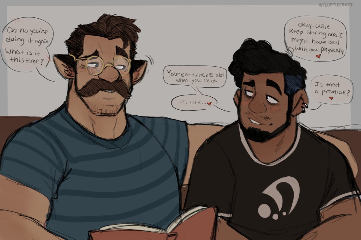 Matt has a habit of being fascinated and complimenting Lyall's werewolf features. Lyall doesn't mind his boyfriend doing so, though it does fluster him every time. Not that Matt doesn't already know that. 🐺❤️