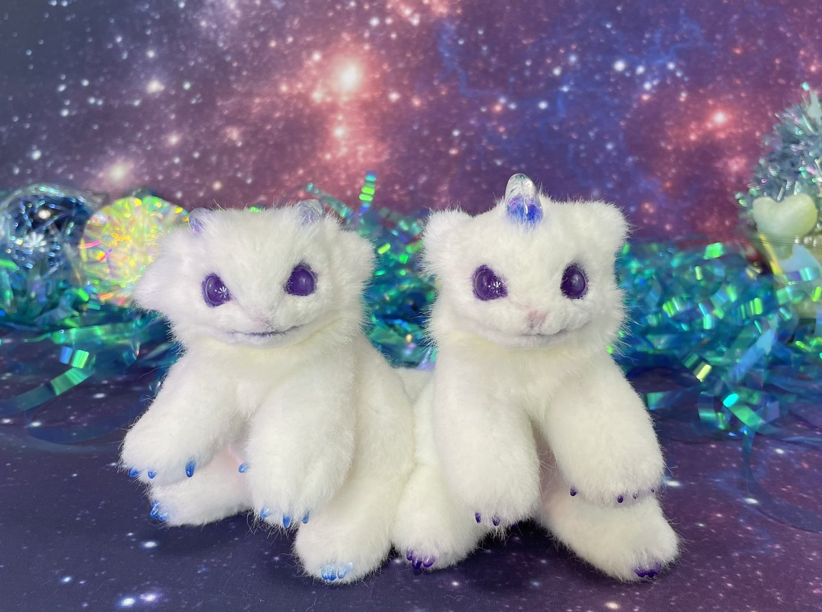 🌌宇宙猫🐈 あの子、魔法雑貨店のビン入り銀河を飲み込んじゃったんだって…! 身体を巡る銀河の影響で目も耳も肉球も、体全体がキラッキラ! 左目を覗けば、今日も銀河が平和に回っているのが分かります🌌 #Fluff_mate #アートドール