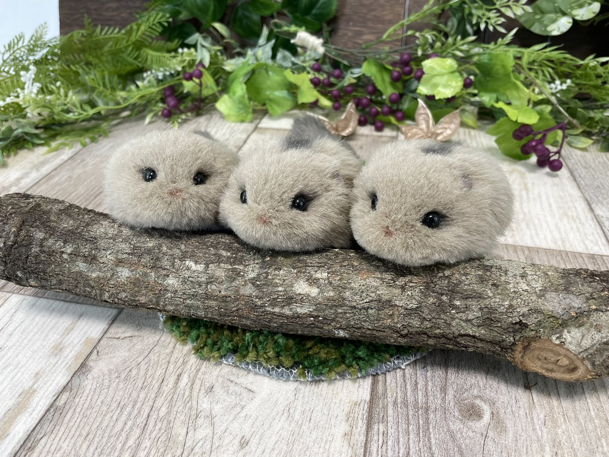 🐁ちっちゃネズミ🌷 フラッフルタウンの小さな小さな住民、ちっちゃネズミが生まれました! 花を寝床にする習性があり、それを親指姫に例えてサンベリーマウスとも呼ばれます🌷 ハチワレグレーは新色です✨ #Fluff_mate #アートドール
