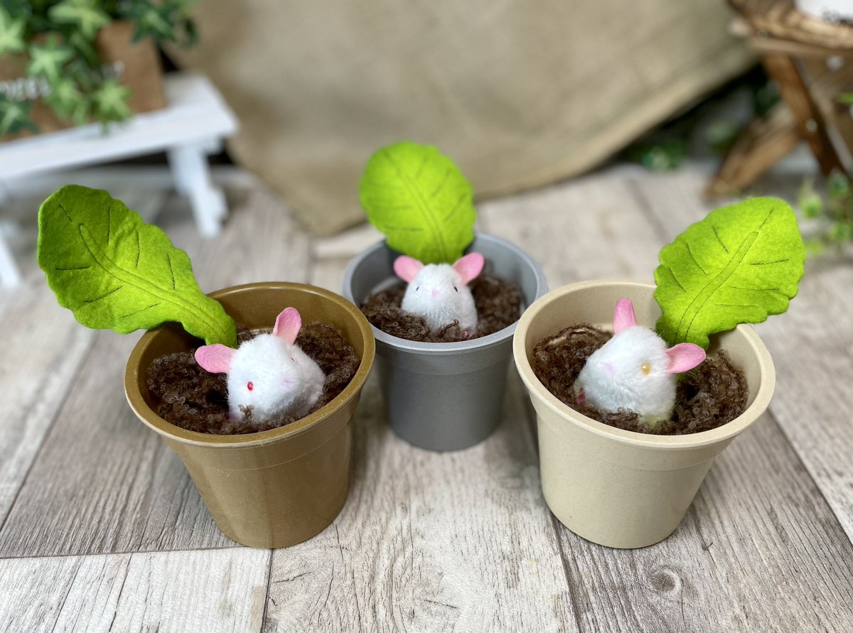 🐁ラディラット🥬 今年もやんちゃなラディラットが収穫できました! ラディラットは畑に住む野菜好きのイタズラねずみです 土に潜って菜葉に擬態して過ごし、人の気配が無くなるとヒョコっと出てきて野菜をひと齧り🥬🥕 ペットとして飼う際はベッドとして植木鉢を用意してあげます🪴 #Fluff_mate