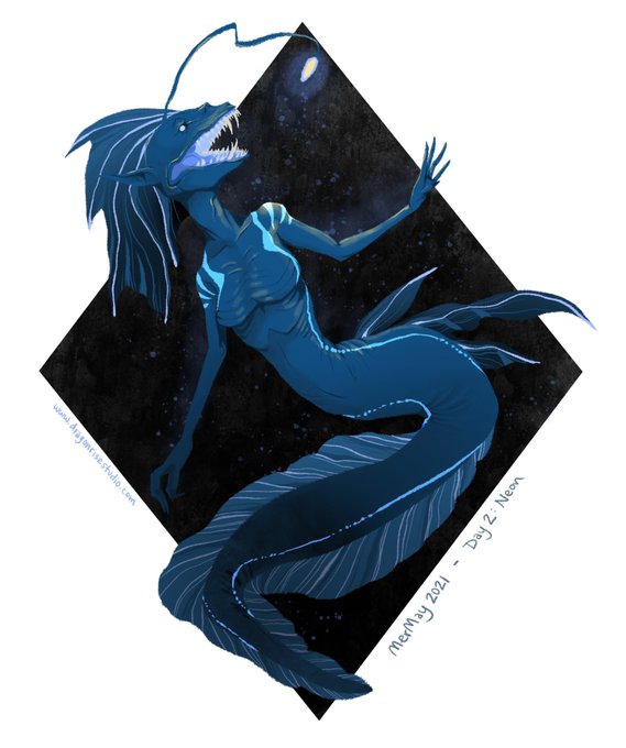 Mermay day 2: "Neon". You know I had to do at least one creepy mermaid 😉🐟 . . . . #mermay #mermay2021 #MerMayWithErika2021 #mermaid #blue #teeth #prompt #prompterchallenge #mermaidart #magical #deepocean #water #procreate #painting #creepy