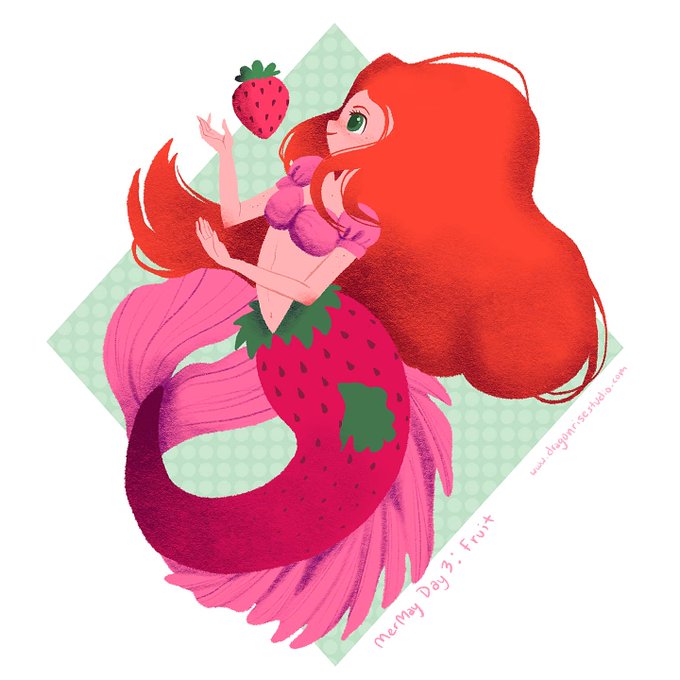 Mermay day 3: "Fruit". A sweet, strawberry mermaid for today 🍓 #mermay #mermay2021 #MerMayWithErika2021 #mermaid #pink #strawberrycutie