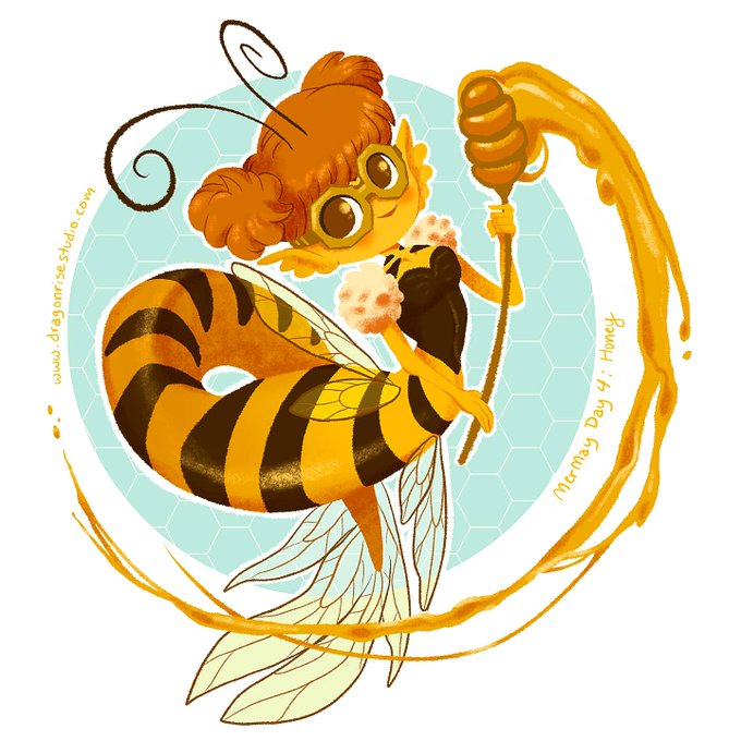 Mermay day 4: "Honey". A weird, fun prompt! To be honest I never thought I'd be drawing a bee-inspired mermaid in my lifetime haha 🐝 #mermay #mermay2021 #MerMayWithErika2021 #Mermaid
