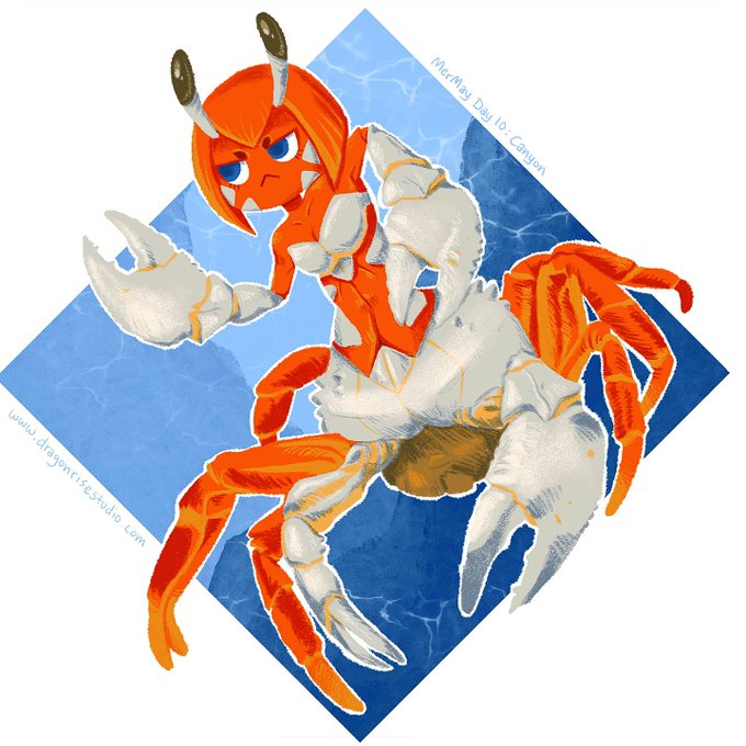 Mermay day 10: "Canyon". This was a tricky one! I might have just wanted an excuse to draw a cranky crab-humanoid lol 🦀 #mermay #mermay2021 #MerMayWithErika2021