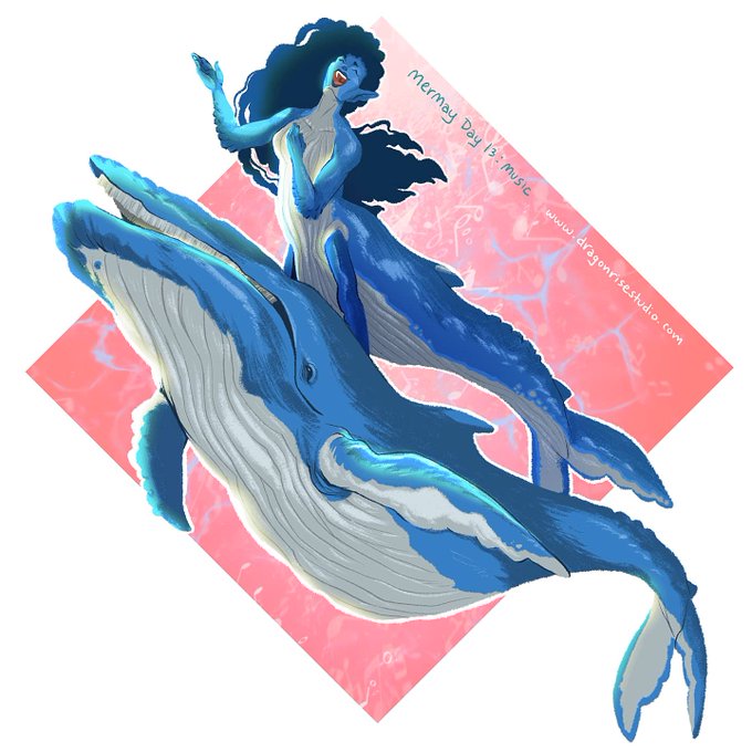Mermay day 13: "Music". I can't think of a more musical sea creature than Humpback Whales, so I decided to incorporate them into my design today 🐳🎶 #mermay #mermay2021 #MerMayWithErika2021 #mermaid #prompt #whale