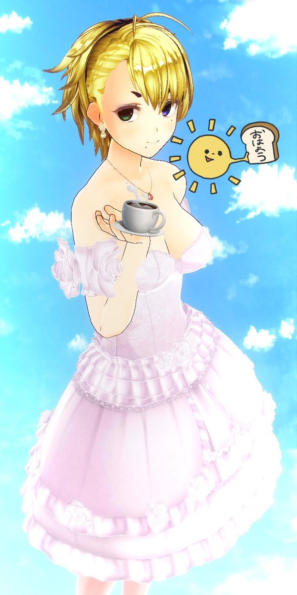 おはよーございます( . .)" ホントこの服かわいー❤ 睡眠負債ちょっとは減ったかな🤭 今日も元気にお過ごしをー (๑•̀ω-)و。* #カスタムキャスト #絵描きさんと繋がりたい #みんなで楽しむTwitter展覧会 #うちの子 ぼんちゃん