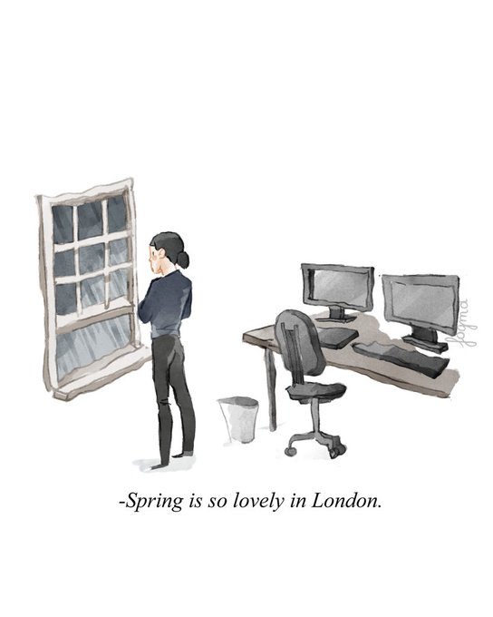 I'm so glad Spring is finally here after all those dark winter months! ... Or is it? Is spring happening somewhere? Do you enjoy some sunshine where you live? #cartoon #spring #london #rain #umbrella #drawing #watercolor #slowHorses #sloughHouse #equinox #ostara