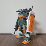 「フルアーマー・パワードジム」 パワード・ジムにウェブラル・アーマーやパイルバンカー装備シールドやツイン・ビーム・スピアなどのジム・ストライカーの武装を現地改修で追加したという設定。 バックパックには2丁のブルバップ・マシンガンを追加装備。 #ガンプラの画像を貼るとRTされると聞いて
