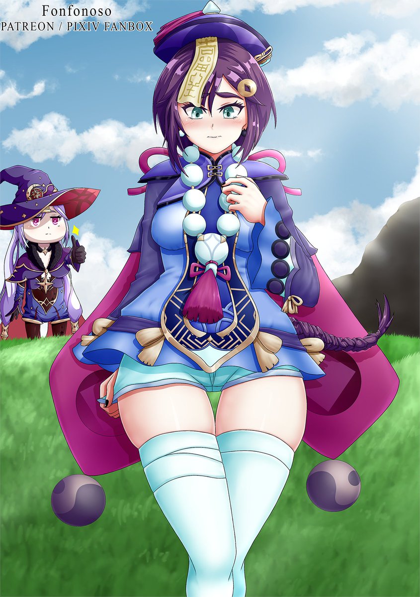 Intente intercambiar la ropa a Mona y Qiqi, pero como también les cambie el peinado, como que no me salieron parecidas xd. #GenshinImpact #mona #qiqi #genshinimpactfanart #videogames