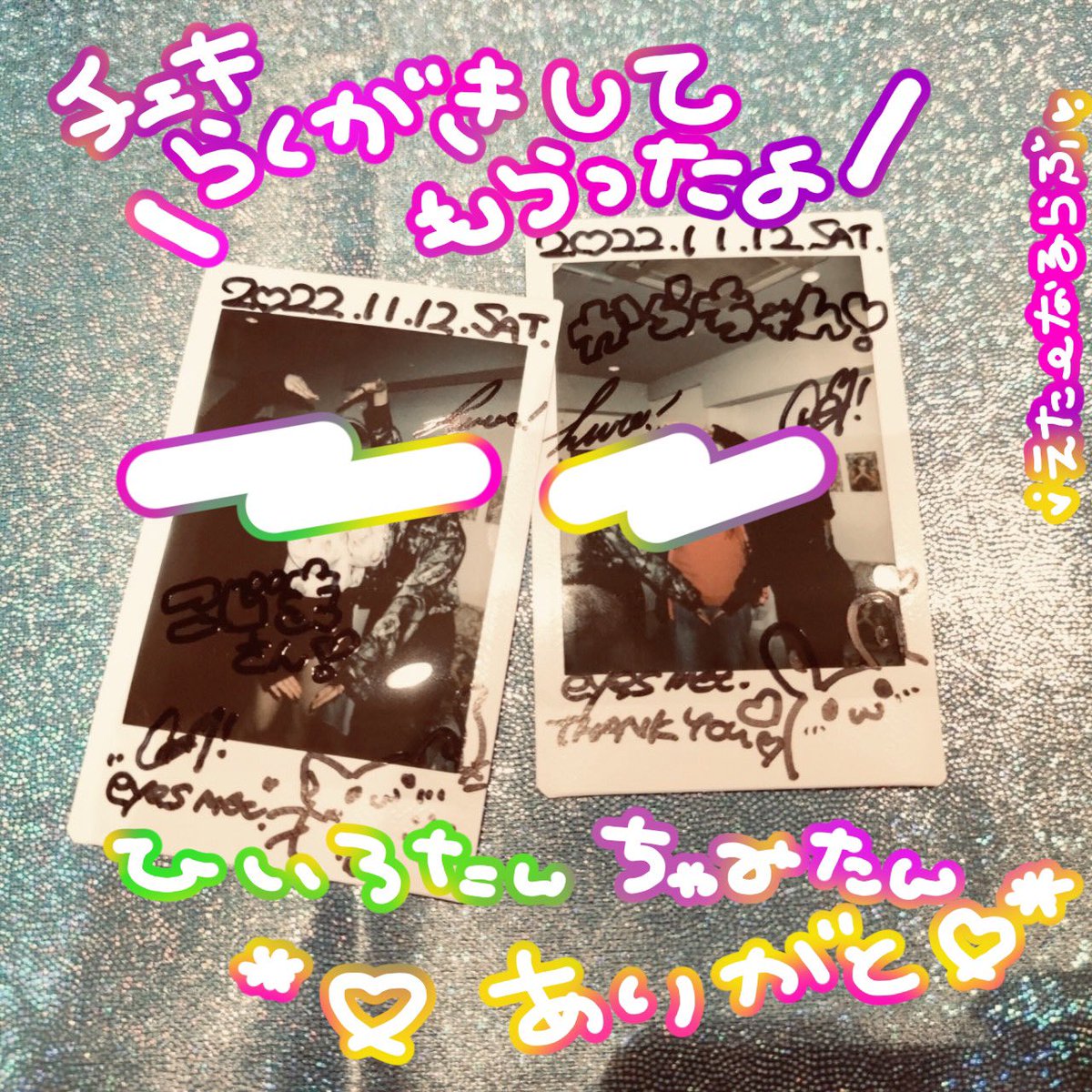 2 2 燈彩❣️ @hiiro753 chami❣️ @too_dazzling4me 2人展『eyes met.』 遊びにいってきました😊✨ まぢ眼福〜💓 ひいろたん安定の画力さち〜👼💎 ちゃみたん初めましてだけだめちゃ作品もノリ最高でした🦋🎊 勝手にチェキとって落書きしてもらう図々しいおばさんしました🤲❣️ 2人ともありがちょ❣️ 22/11/13 13:49