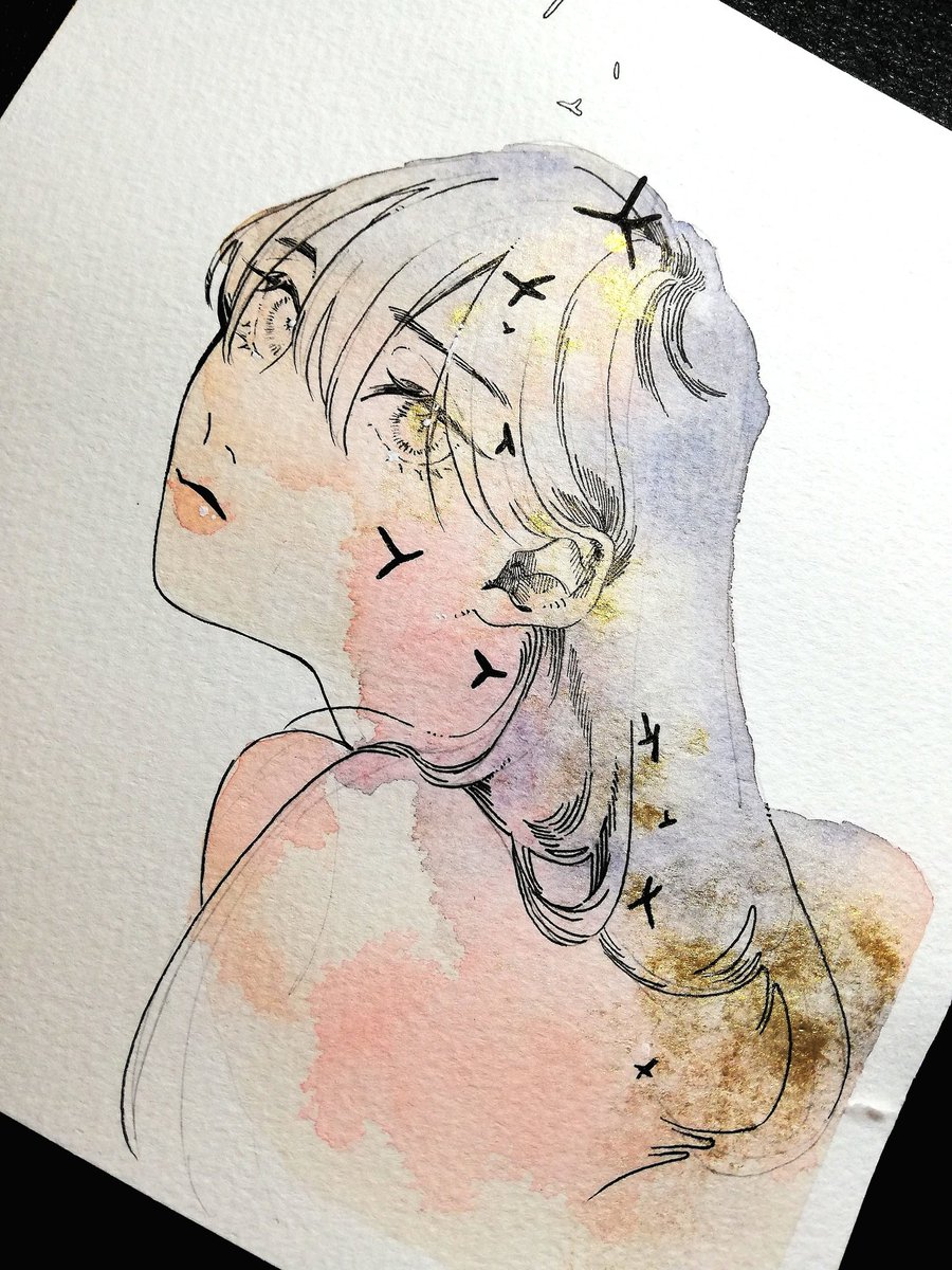 #透明水彩のTwitter展覧会 いつも私の我儘に付き合ってくれてありがとう… 水と色と紙が一体化する感じ…とっても心地良くて…これからも愛します…ダイスキ𓀤
