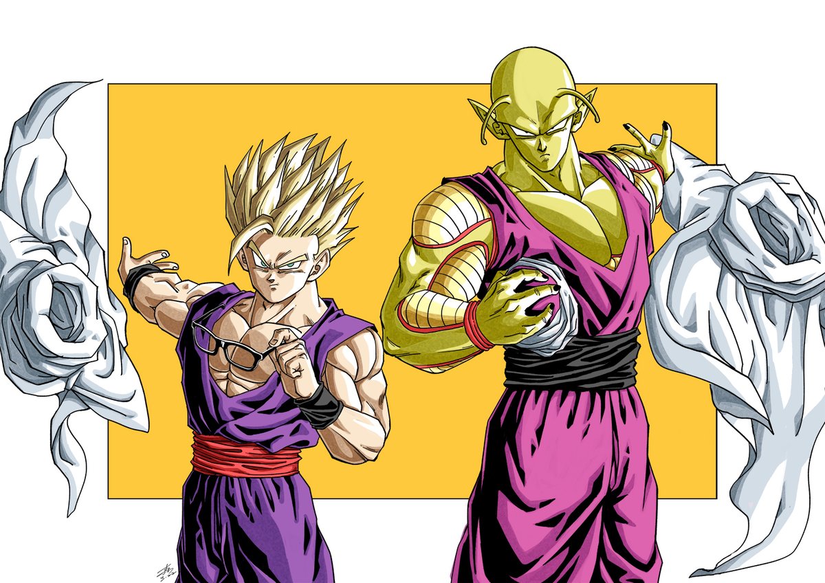 #今年も残りわずかなので今年一番伸びた絵を貼る見た絵描きさんも強制でやる 超サイヤ人孫悟飯とピッコロ(潜在能力解放)