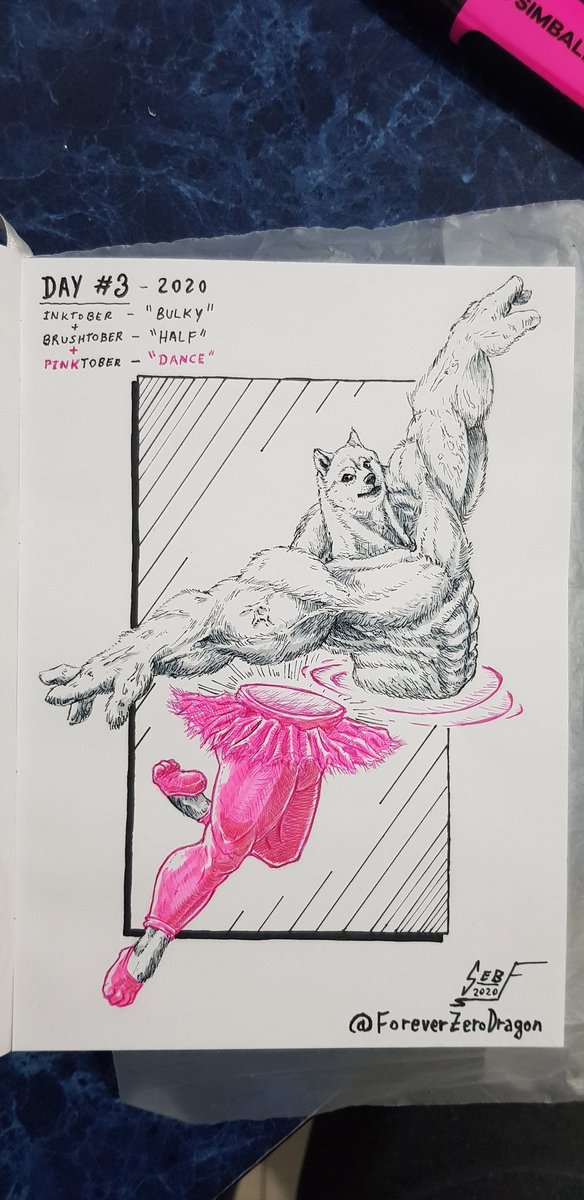 DAY 3 💪🐶💃 Multiple prompts on one drawing. #inktober ✒ -> " BULKY" (@jakeparker - official prompt list) + #brushtober 🖌-> "HALF" (@bluefley - @cubebrush) + #pinktober 🎀-> "DANCE" (@ergo.josh - @ergo.sketch) #inktober #inktober2020 #bulky @inktober #IPEVO #InktoberDay3