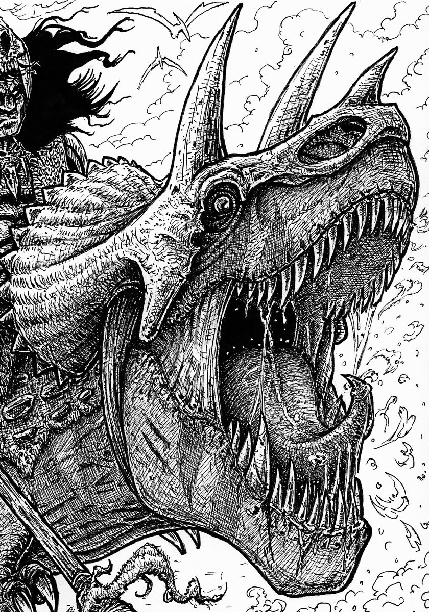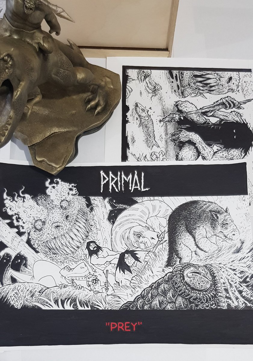 My ink drawings for the "Primal x Inktober" 2020 challenge from last October where I resulted one of the 4 lucky winners of a custom trophy statue 😭🙏 #primal_inktober #Primal #Inktober #inktober2020 #adultswim #GenndyTartakovsky #JakeParker #ink #dinosaur #spear #fang