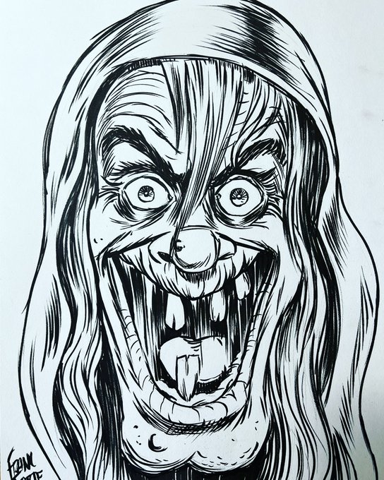 Working on doing some #inktober #drawings prompts -finally had some downtime between storyboards jobs -Heres The #OldWitch from #ECComics @eccomics @CartoonKayfabe #kayfabetober #cartoonistkayfabe #comics #art #horror #horrorcomics #comicartist #darkart #horrorart #penandink