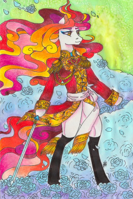 My crystal pony oc DawnsFire cosplaying as Oscar from Rose of Versailles DA Link: deviantart.com/fountainstrang… #cosplay #mlp #crystalpony #dawnsfire #oc #oscar